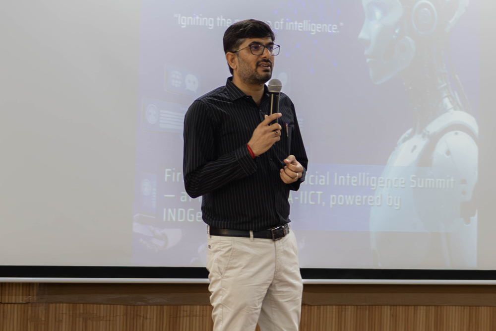 Continuing the 25 years of excellence celebration at Dhirubhai Ambani University (DAU), the IEEE Student Branch at DAU in collaboration with INDGenius Gujarat, organised the INDGenius AI Summit 2025 on September 14, 2025. As the first student-led artificial intelligence summit, the event's core mission was to explore AI's profound impact across various industries. It aimed to raise awareness of contemporary AI developments, foster a dynamic dialogue between students and industry practitioners, and showcase career pathways to encourage interdisciplinary collaboration.