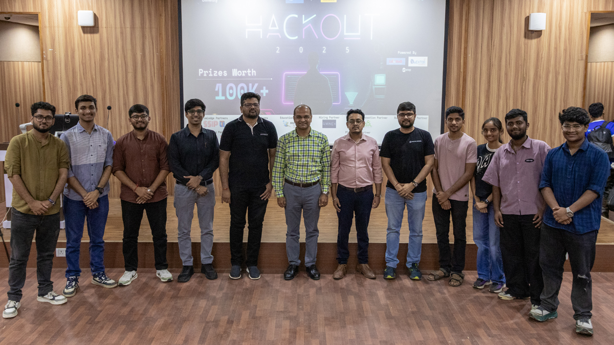 HackOut’25, the 12th edition of the annual hackathon, was a continuous 72-hour coding competition held from August 29-31, 2025. As a key event of Synapse’26, it blended innovation with practical application. The Chief Guest of the event was Dr Narottam Sahoo, Advisor at GUJCOST, DST, and Guests of Honour were Mr Rajendra Mistri, General Manager at GPCL, and Mr Nilesh Ranpura, Senior Director at eInfochips. Synapse is the annual techno-cultural festival of Dhirubhai Ambani University (Formerly DA-IICT).