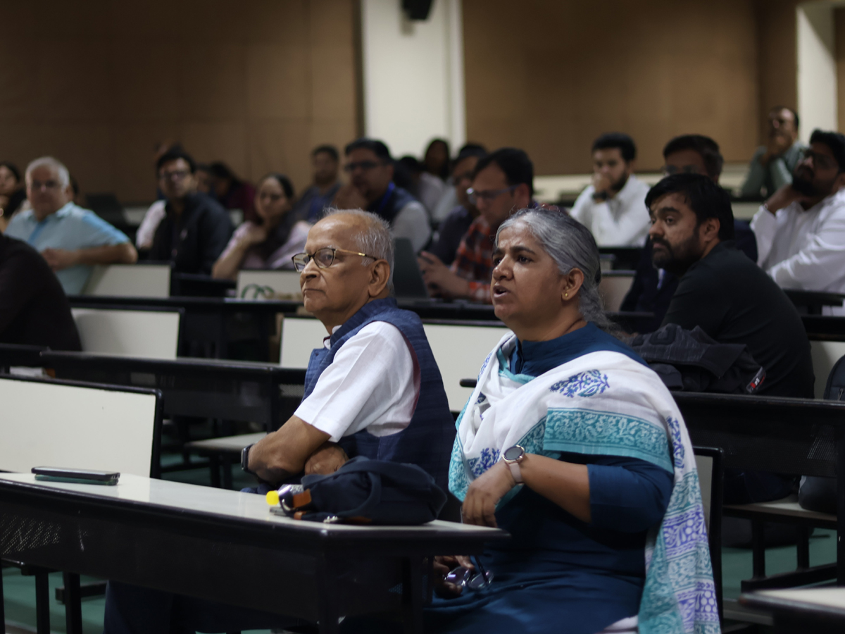 A panel discussion on The Engaged Classroom: AI, Online Learning, and the Future of Pedagogy had Prof Sameer Sahasrabudhe (IIT Gn), Prof Zunnun Narmawala (Nirma University), Prof Barnali Chetia (IIIT-Vadodara), and Prof Dhaval Patel (Ahmedabad University) as panel members and Prof V Sunitha as a moderator.